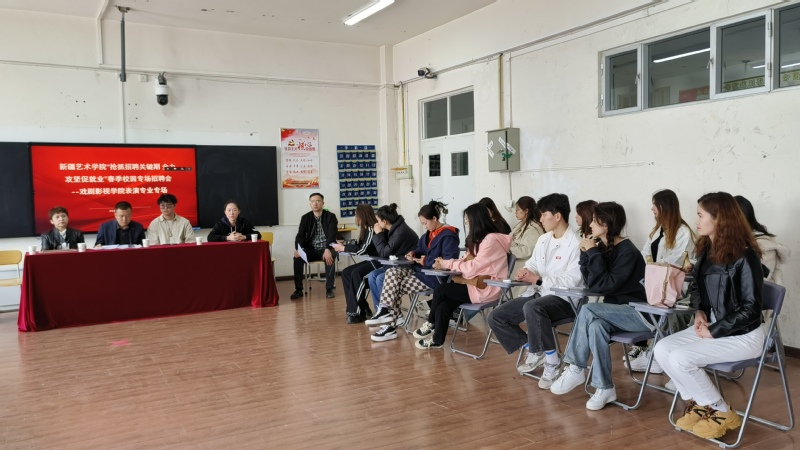 招聘会上,来自新疆生产建设兵团第八师艺术剧院(石河子艺术剧院)、新疆天籁之声文化传媒有限公司和新疆石榴精神文化传媒有限公司的负责人分别介绍了各自单位的基本情况和招聘需求,共提供40个招聘岗位。同学们通过唱歌、跳舞、表演等方式积极展示自我,展现出了戏剧影视学院表演专业学生的专业素养和个人特色。经过与用人单位负责人的深入交流之后,9名同学与之达成了就业实习意向。