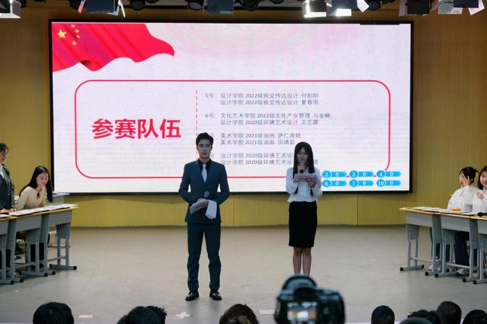 3月27日下午,决赛在学校学术厅拉开了帷幕,学校团委、招生就业处领导老师及各学院学生200余人参加活动。决赛设有团队必答题、团队抢答题和自选风险题,比赛过程中还进行了现场观众互动问答。经过同学们的激励争夺、强强比拼,最终传媒学院2020级动画专业的闫洪源、卡米拉·艾克然木组成的团队获得一等奖。