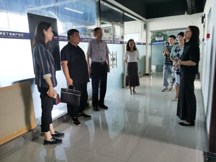 新疆创客时代信息科技服务有限公司总经理赵力向调研组一行介绍公司直播带货运营流程
