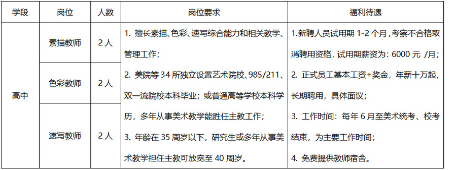 (二)招聘岗位要求及待遇