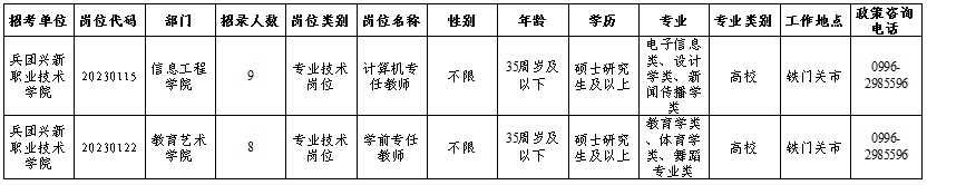 2.信息发布平台:兵团兴新职业技术学院官网和各高校官方网站为此次招聘工作各类信息发布的官方平台。